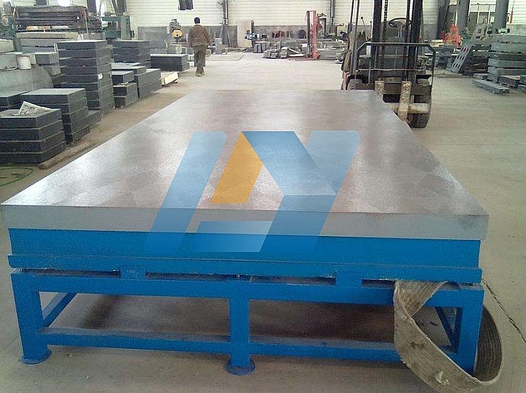2、將鑄鐵平板支承點墊好、墊平,每個支撐點受力均勻,整個鑄鐵平板平穩(wěn)。